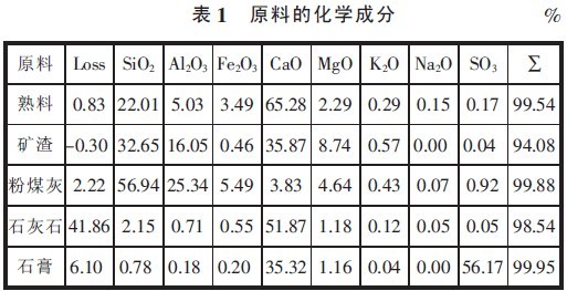 所用原料的化学成分见表1。