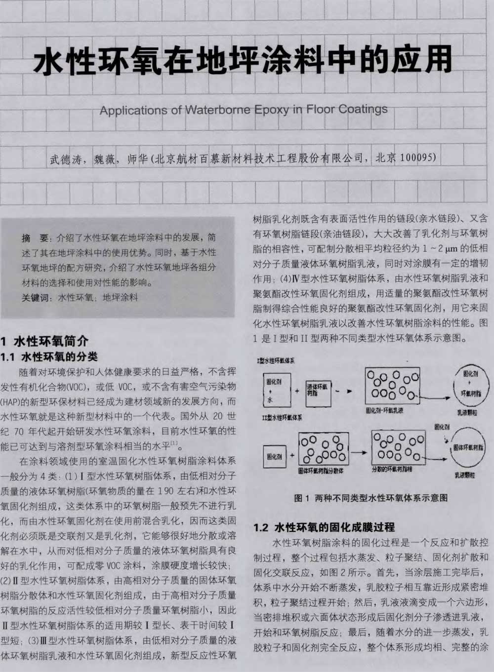 (2)基于水性环氧地坪的配方研究,介绍了水性环氧地坪各组分材料的选择和使用对性能的影响。