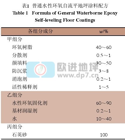 普通水性环氧自流平地坪涂料配方如表1所示。