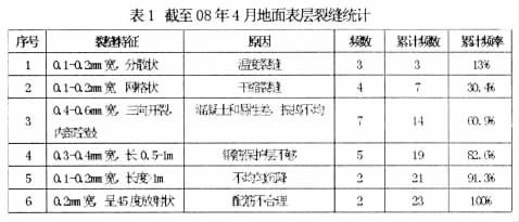 从统计数据上看, 施工过程中质量控制不严和养护不当导致80%的裂缝出现, 如果承包商针对耐磨地面做详细周密的施工质量控制应该可以避免大多数的裂缝出现。