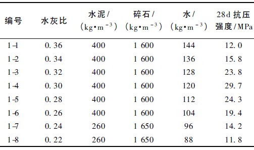 表1 水灰比与抗压强度关系