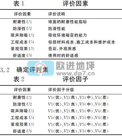 U={耐磨性U1,防滑性U2,吸声降噪U3,工程成本U4,景观效果U5,舒适度U6}。