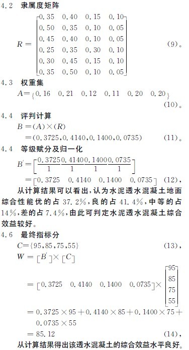 4 透水混凝土地面铺装综合效益模糊综合评价分析